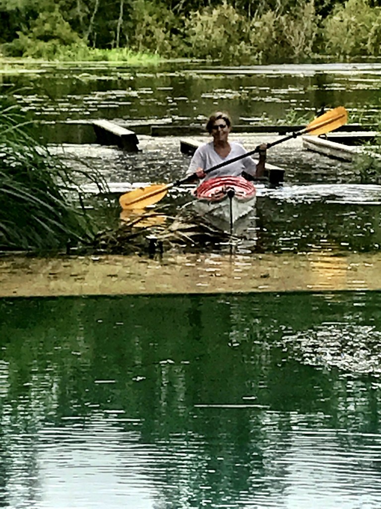 Katie paddles over our deck.