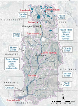 Previous Image Next Image Screen Shot 2018-01-08 at 10.17.58 AM Peace River Map (Courtesy of https://www.swfwmd.state.fl.us/waterman/peaceriver/map.html) Peace River watershed